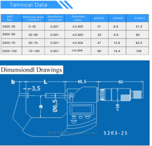 Shahe Digimatic Mircometer Outside 0 to 25 mm Model: 5203-25